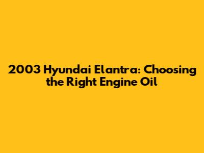 Hey guys! If you're here, you're probably wondering about the best engine oil for your trusty 2003 Hyundai Elantra. You've come to the right place! Choosing the right engine oil is super important for keeping your Elantra running smoothly and extending its life. We're going to dive deep into everything you need to know, from the recommended oil types to how often you should be changing it. So, grab a cup of coffee, and let's get started!