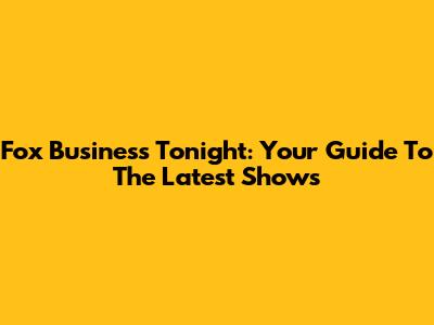 Fox Business Tonight: Your Guide To The Latest Shows