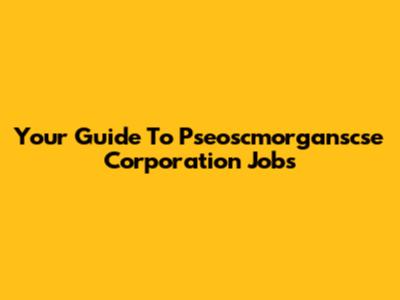 Your Guide To Pseoscmorganscse Corporation Jobs