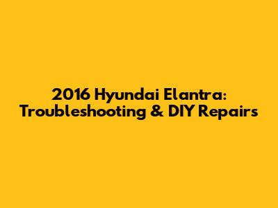 2016 Hyundai Elantra: Troubleshooting & DIY Repairs