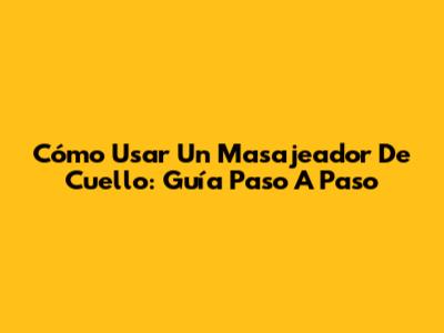 Cómo Usar Un Masajeador De Cuello: Guía Paso A Paso