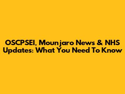 OSCPSEI, Mounjaro News & NHS Updates: What You Need To Know