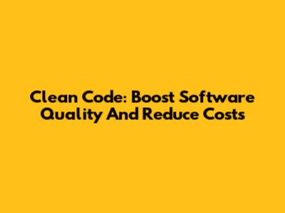 Clean Code: Boost Software Quality And Reduce Costs