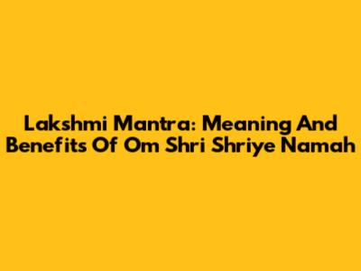 Lakshmi Mantra: Meaning And Benefits Of Om Shri Shriye Namah
