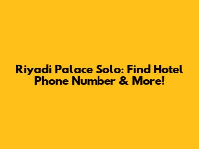 Riyadi Palace Solo: Find Hotel Phone Number & More!
